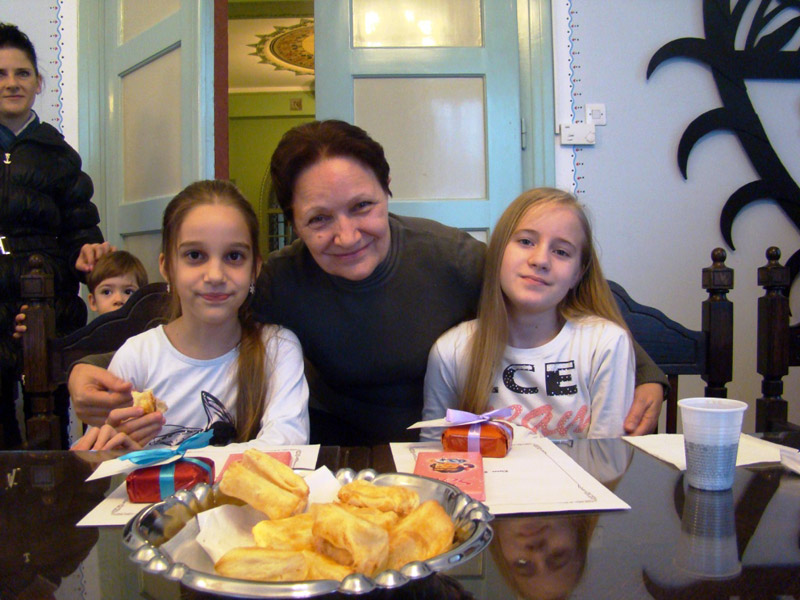 Devojčice Kiti Sarapka i Doris Bartuš sa svojom vaspitačicom Đurčik Katalin.
