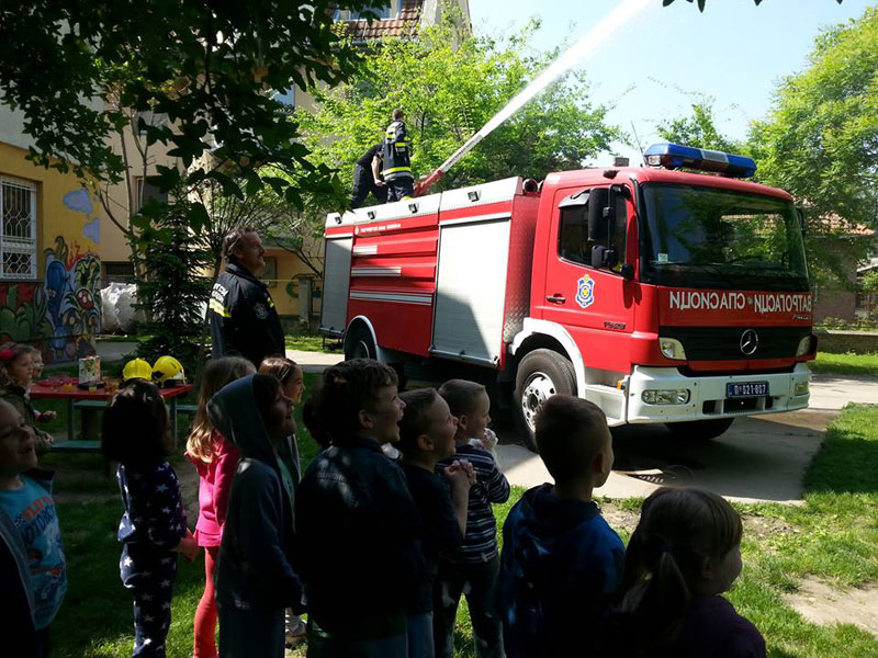 Vatrogasna jedinica Subotica je posetila vrtić KOLIBRI. U toku posete vatrogasci su pokazali deci kako izgleda vatrogasna oprema, uniforma, šta se sve nalazi u vatrogasnom kamionu. Potom su nam napravili jednu pokaznu vežbu u kojoj su deci demonstrirali kako izgleda gašenje penom, što je decu posebno obradovalo. Videli smo kako se koristi vodeni top, demonstrirali su nam kako se koristi veliki ventilator za izbacivanje dima iz prostorije. Decu je zanimalo da li postoji škola za vatrogasce, da li je to opasan posao?! Vatrogasci su bili raspoloženi da odgovaraju na sva dečja pitanja. Poseta vatrogasaca se završila tako što je većina dečaka i poneka devojčica obećala vatrogascima da će se jednog dana sresti s njima... ali da ce tada biti njihove kolege