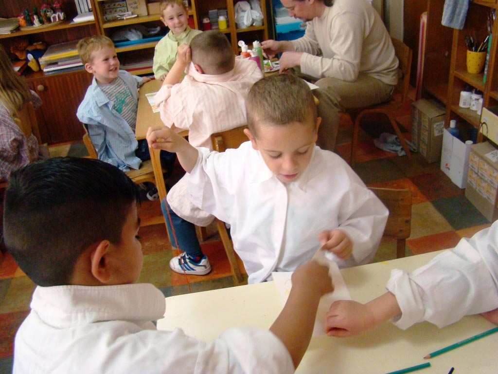 Po dolasku u atelje obukli su zaštitne košulje kako bi slobodno mogli uživati u igri bojama i kreirati svoje neobične slike. Vrlo važan uslov za svako stvaralaštvo je da umetnik bude oslobođen straha da će boja kapnuti na pod ili na njegovo odelo.