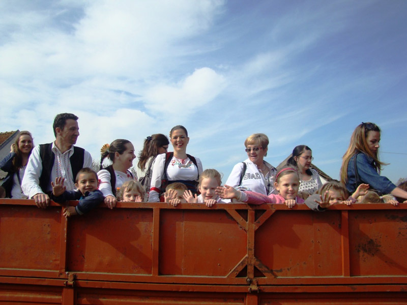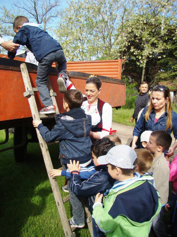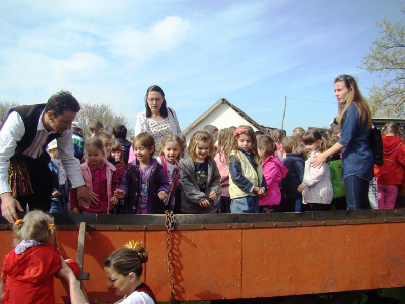 Promenili smo prevozno sredstvo. Nakon vožnje autobusom ukrcali smo se u traktorsku prikolicu kojom smo se prevezili do salaša naših domaćina, porodice Papak.