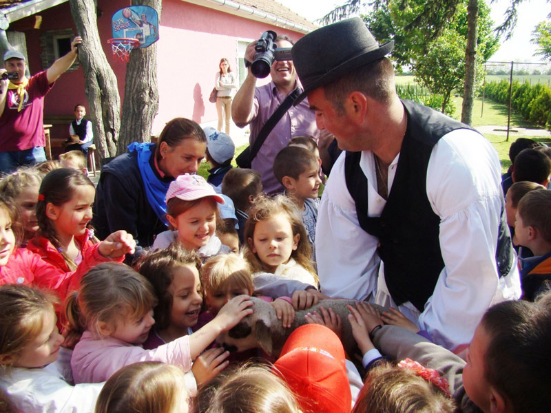 Usledio je obilazak farme. Za mnogu decu iz grada bio je ovo prvi susret sa domaćim životinjama. A na salašu: svinje, magarac, jagnje i zeke... svi su spremno dočekali goste.