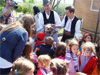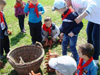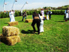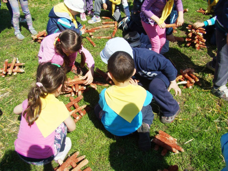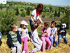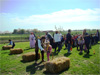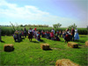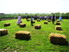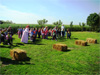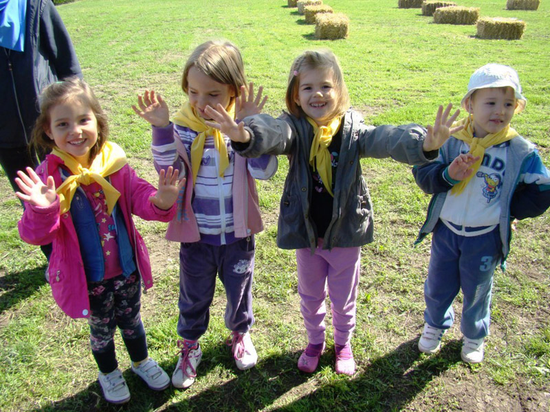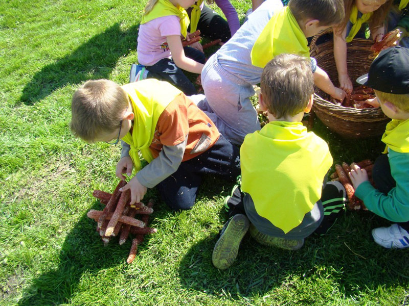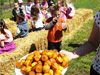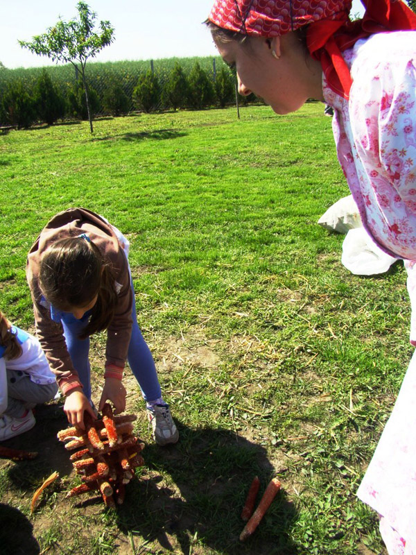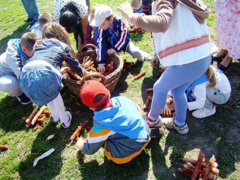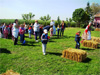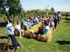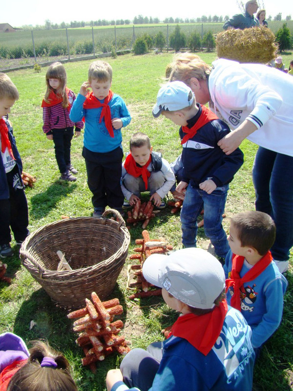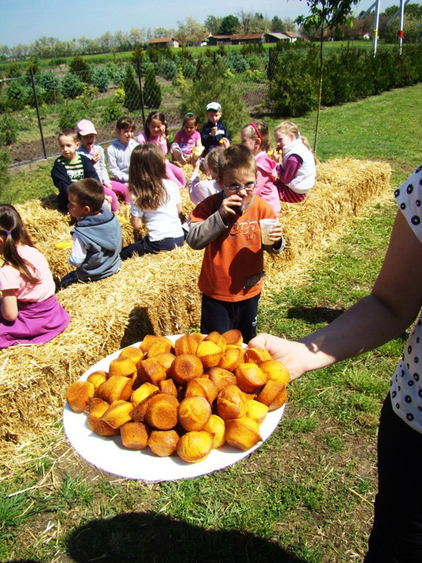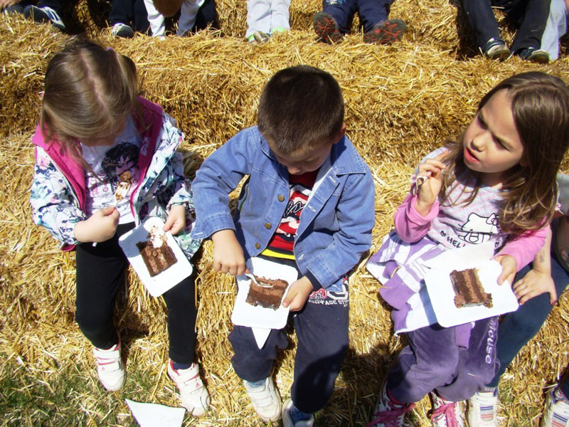 Umorni i zadovoljni mališani su oprali ruke i počastili se. Bale slame su poslužile kao stolovi i stolice.