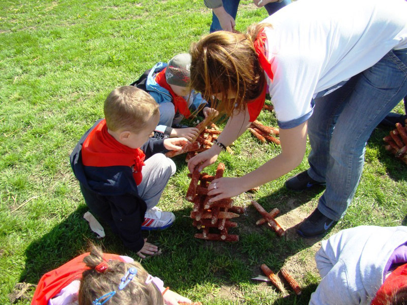 Četvrta igra: ZIDANJE KULE OD ČUTAKA. Cilj je bio sagraditi najvišu kulu.
