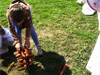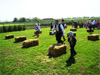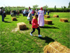 Vaspitačica Miljana je demonstrirala prvu igru: NOŠENJE ORAHA U KAŠIKI. Zadatak je bio proći poligon sa preprekama od bala slame tako da orah ne ispadne iz kašike.