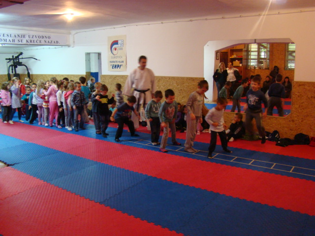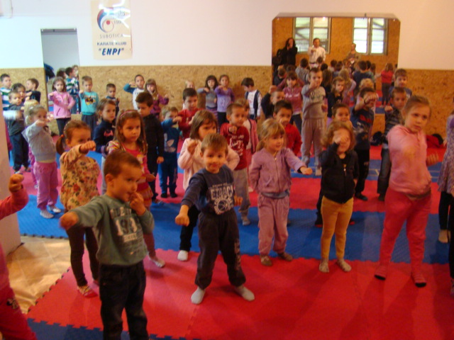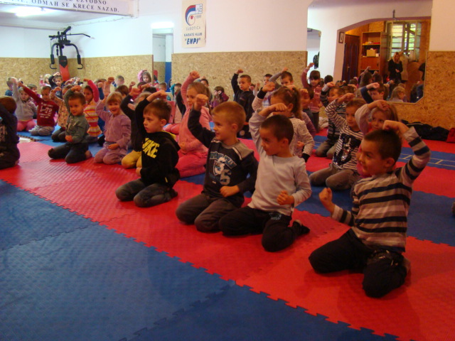 Posete sportskim klubovima: ENPI karate klub, kao i prethodnih godina najspremniji za saradnju, u svoje prostorije primio je mališane iz vrtića KOLIBRI, POLETARAC, NEVEN, PLAVI ZEC, VEVERICA, PALČICA, PLAVI ZEC, MAŠTALICA, ZVONČICA, MASLAČAK, ZEKA, MARIJA PETKOVIĆ - SUNČICA i LASTAVICA, ukupno 507 dece. Karate trening u vrtiću za mališane koji je bio problem da dođu do grada održan je u vrtiću MARIJAI MARIA, NAŠ BISER i MALI PRINC. Na ovaj način treningu karatea prisustvovalo je cca 190 mališana.