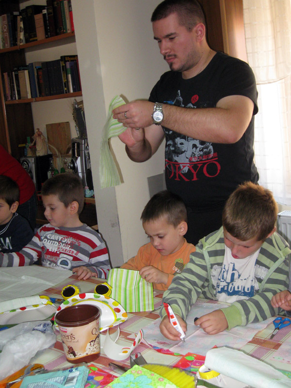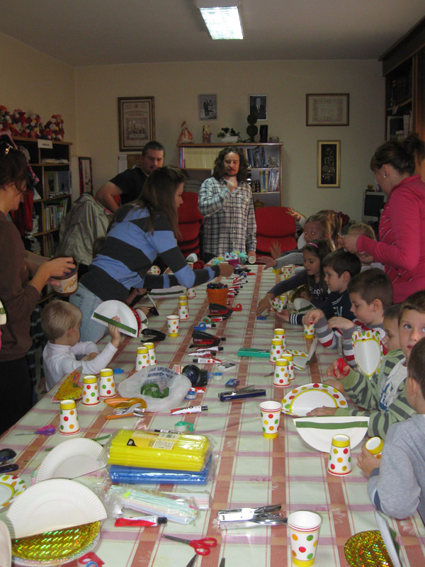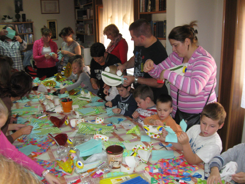 Drugi put ove godine u okviru Dečje nedelje održana je lutkarska radionica za decu i roditelje i vaspitače vrtića MARIJA PETKOVIĆ. Tema radionice bila je izrada lutke zevalice, a radionica je nosila naziv PAPIRNATA ČUDOVIŠTA jer se za izradu lutke koristi papirni partI program, tj. papirni tanjirići, čaše, salvete, slamčice, plastični pribor za jelo. Radionicu su vodili Ljubica Suturović i Arsen Ćosić.