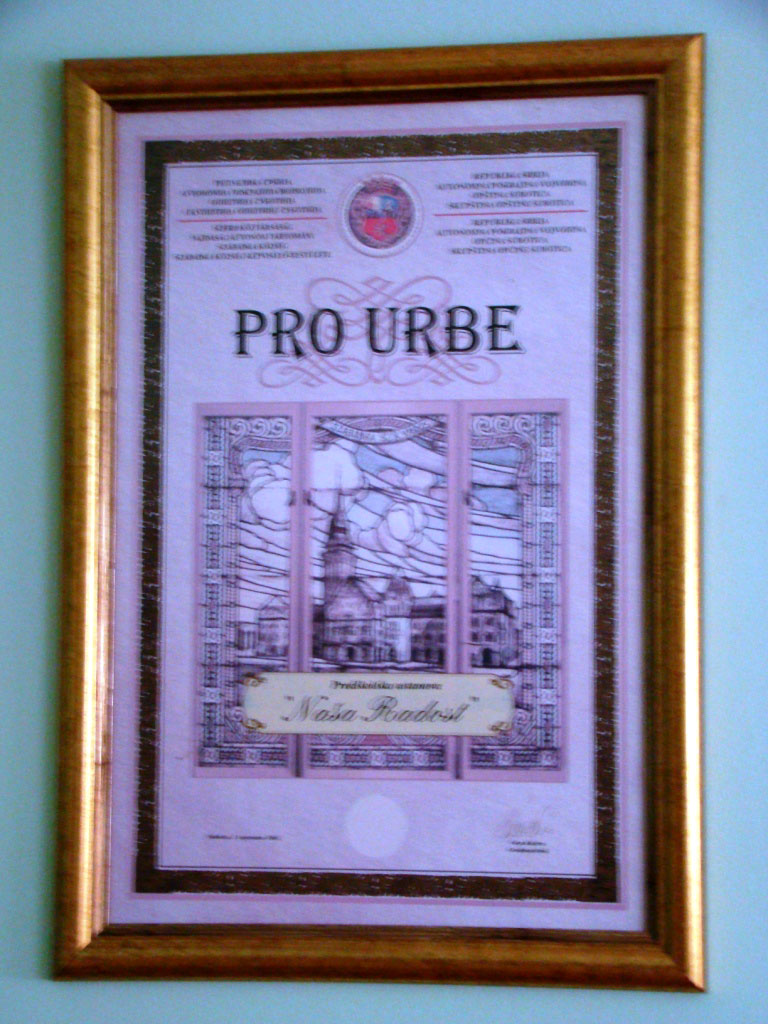 Najviše priznanje grada Subotice PRO URBE, 2003. g.