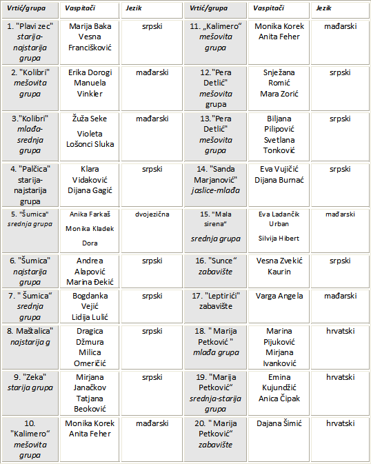 uzrasta u redovne grupe vrtića na teritoriji Subotice i
