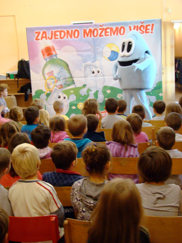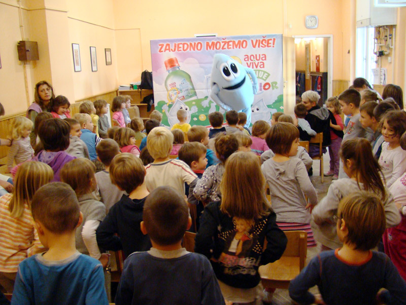 Fotografije gpovore da su se deca dobro zabavljala, a nakon predstave Akviša je svako dete počastio JUNIOR vodom.