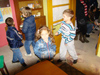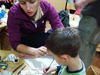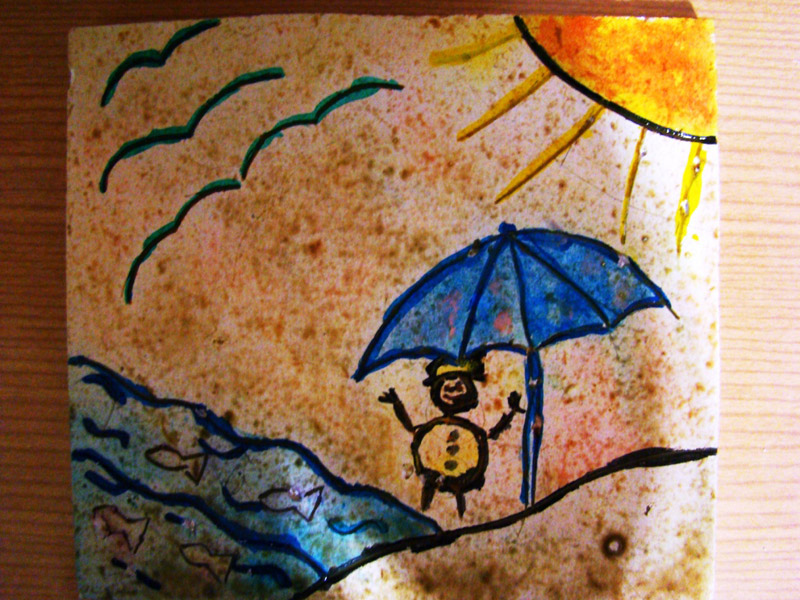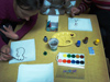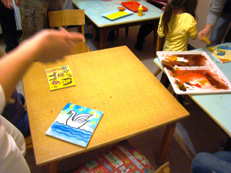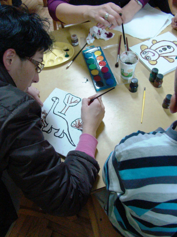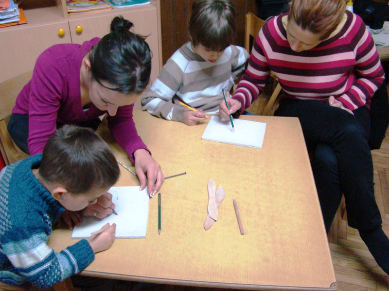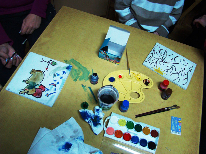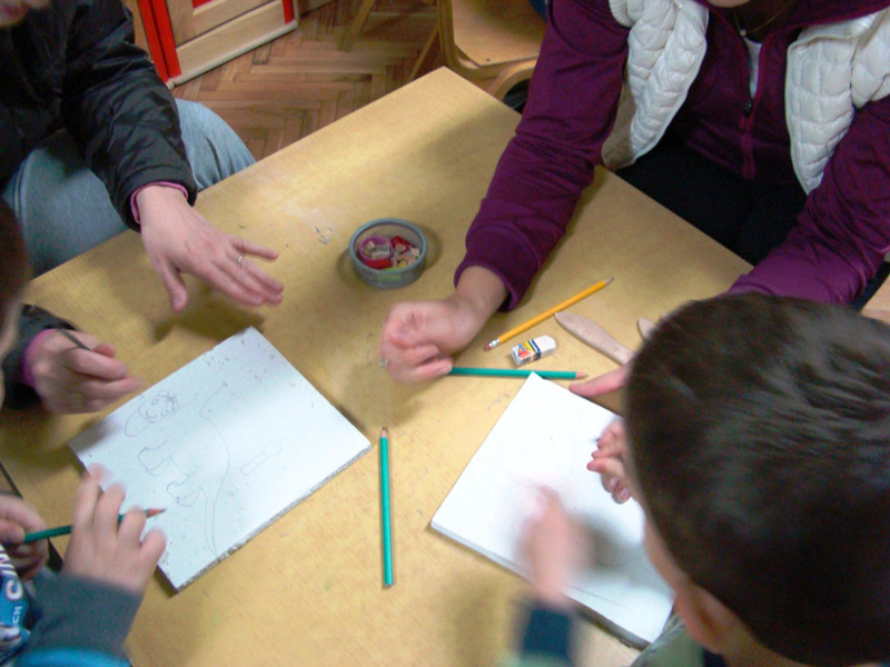 Radionicu gipsoreza na gips pločama vodili su Ljubica i Arsen, saradnici za likovne i kulturne aktivnosti Ustanove. Kameni crtež nastaje tako što se ba gips ploči olovkom nacrta crtež čije se linije pose izdubljuju u gips ploči. zatim se četkicom i tušem uz pomoć puno vode sve to oslikava. Završni izgled tj. simulacija kamena dobija se tako što se sunđerom tonira ceo crtež.