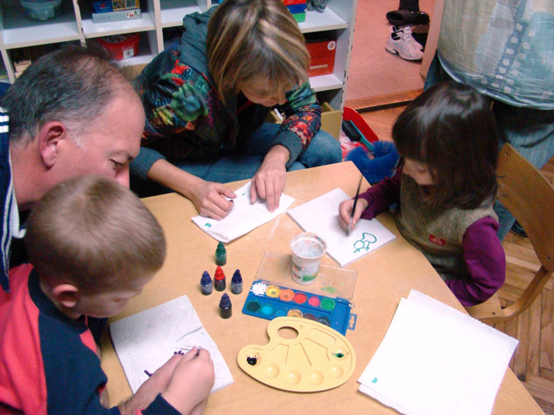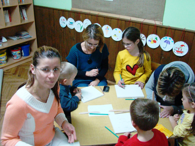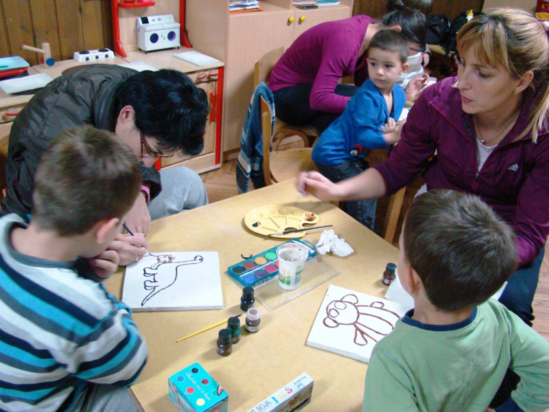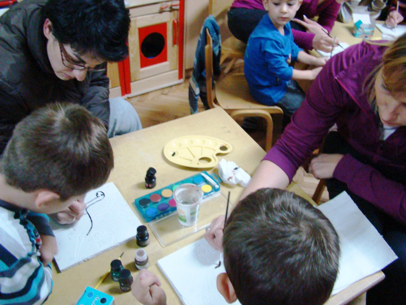 U radionici su učestvovala deca iz vrtića sa svojim roditeljima i vaspitačima Snežanom i Zoranom.