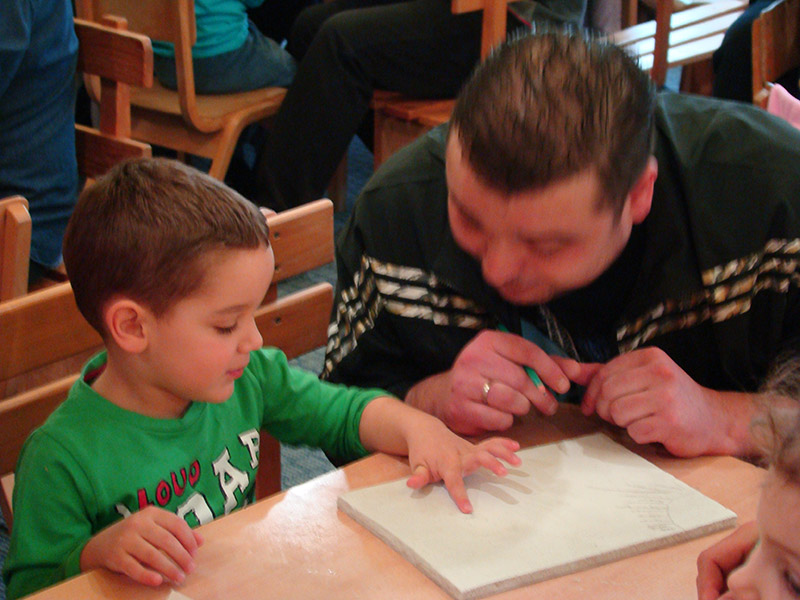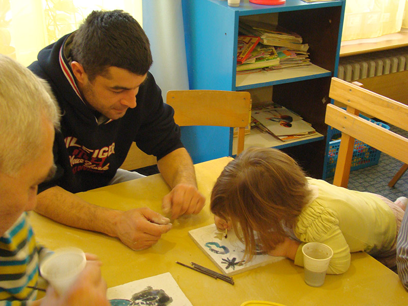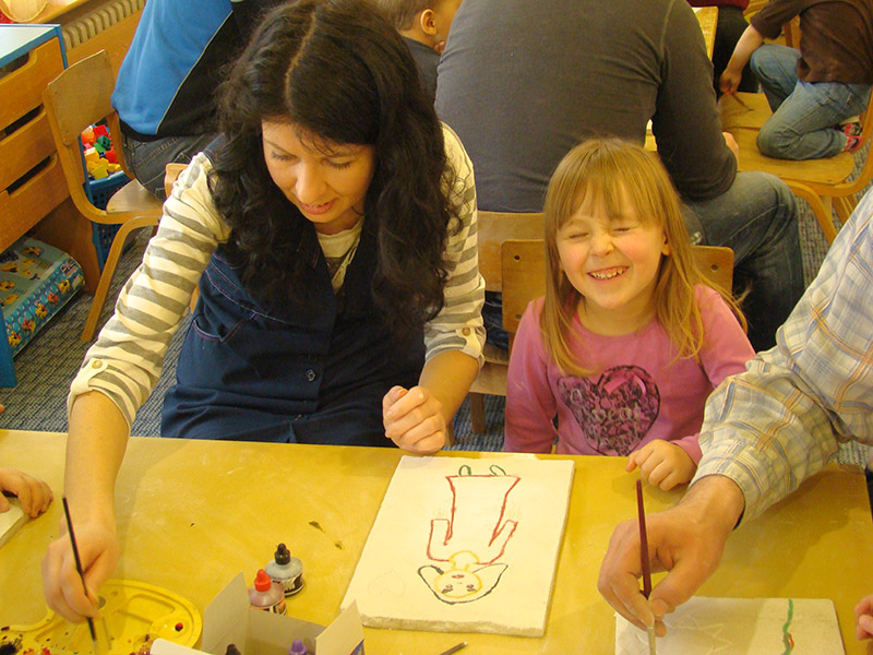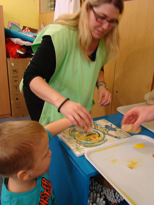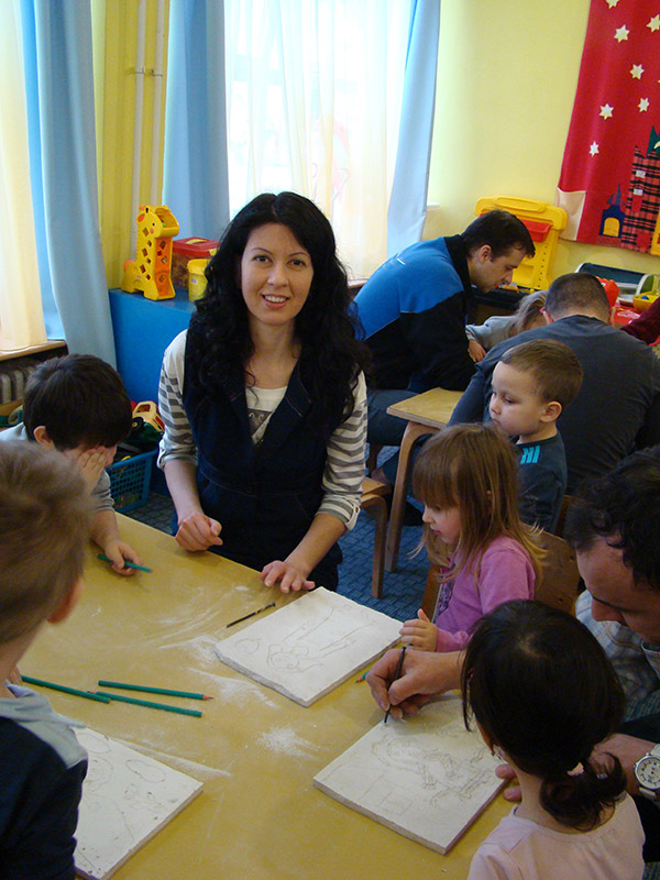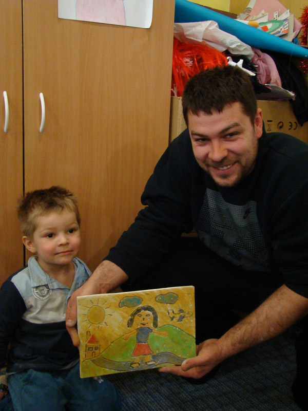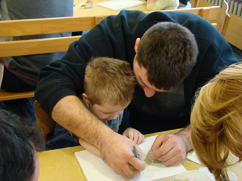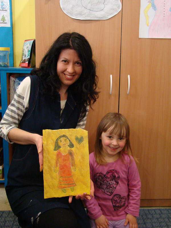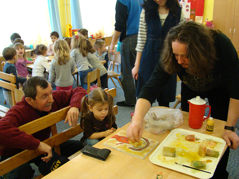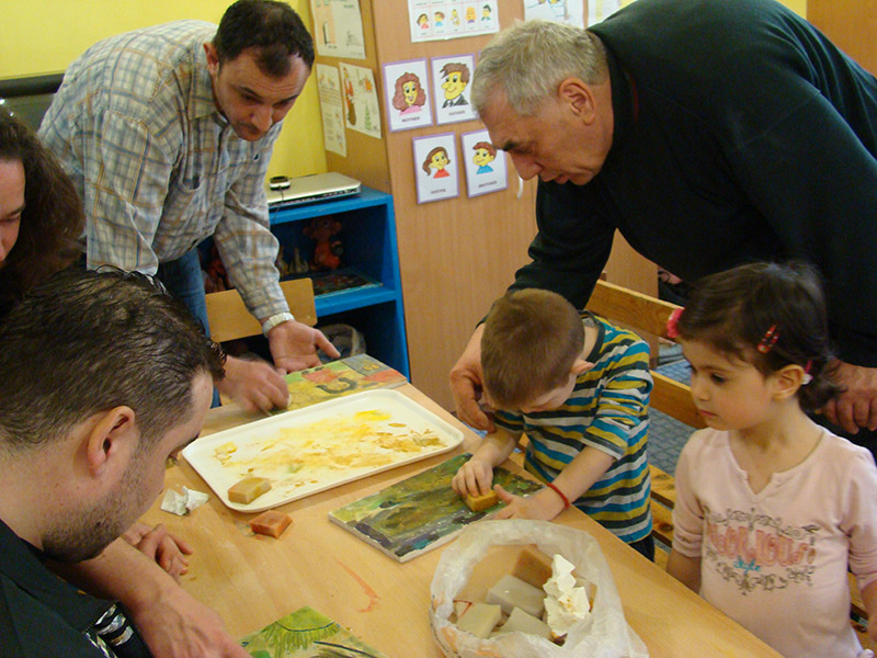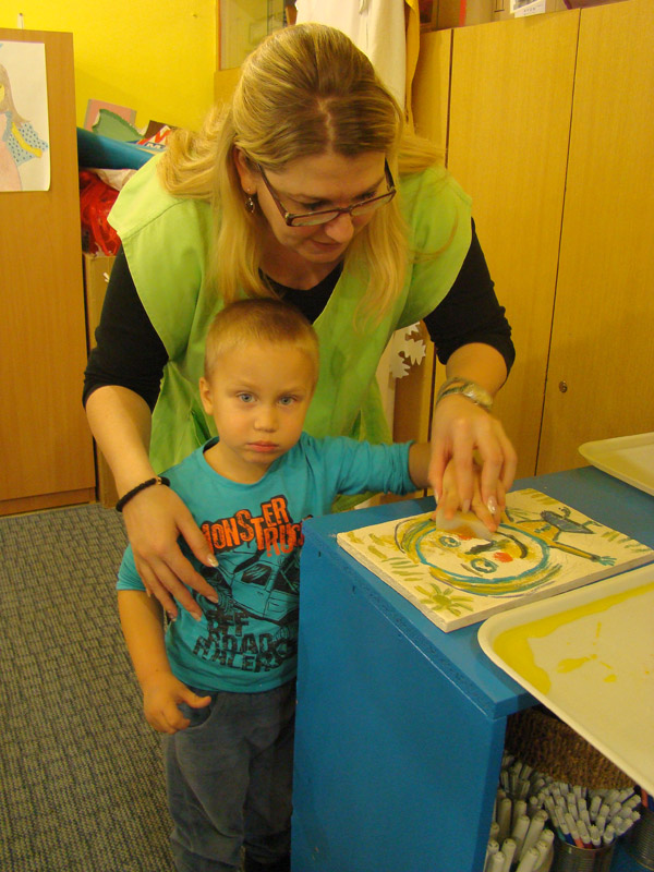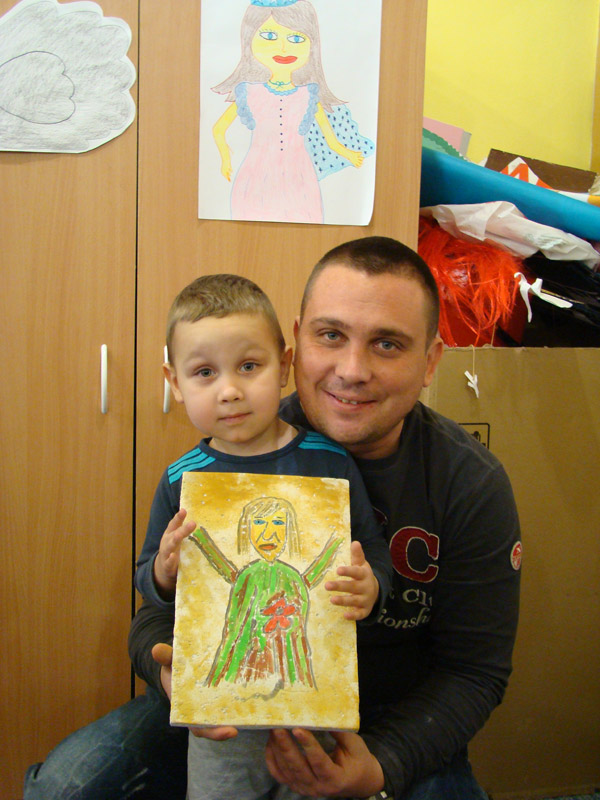 Radionicu su realizirali voditelji likovno-lutkarske radionice Ustanove Ljubica Suturović i Arsen Ćosić. Tehnikom gipsoreza na gips ploči deca su uz pomoć starijih pravila sliku majke, koju su posle bojili tuševima i vodenim bojama. Ovakav likovni rad može biti trajna slika na zidu.
