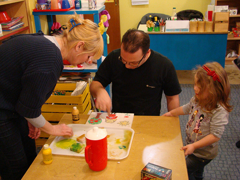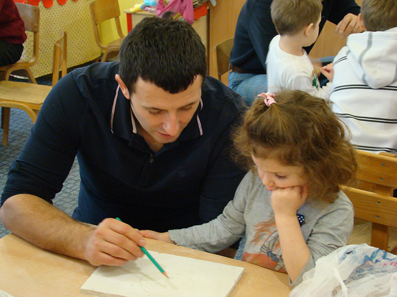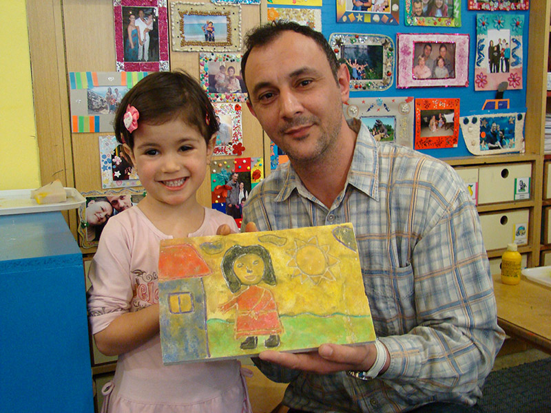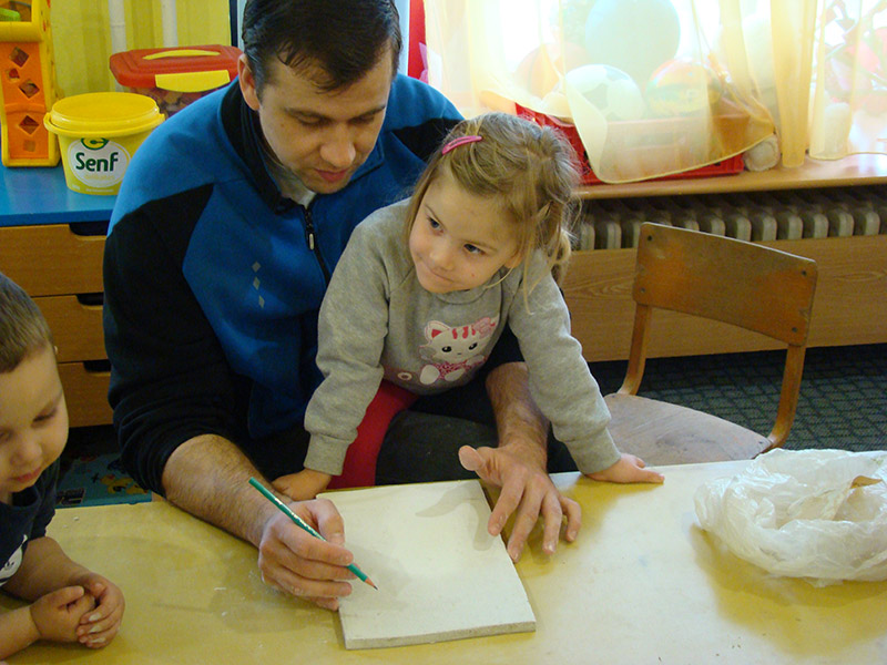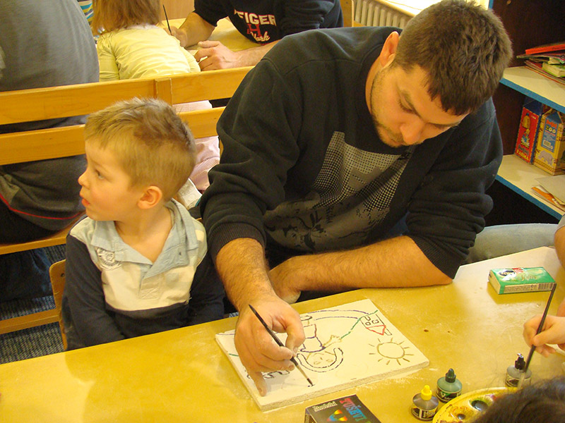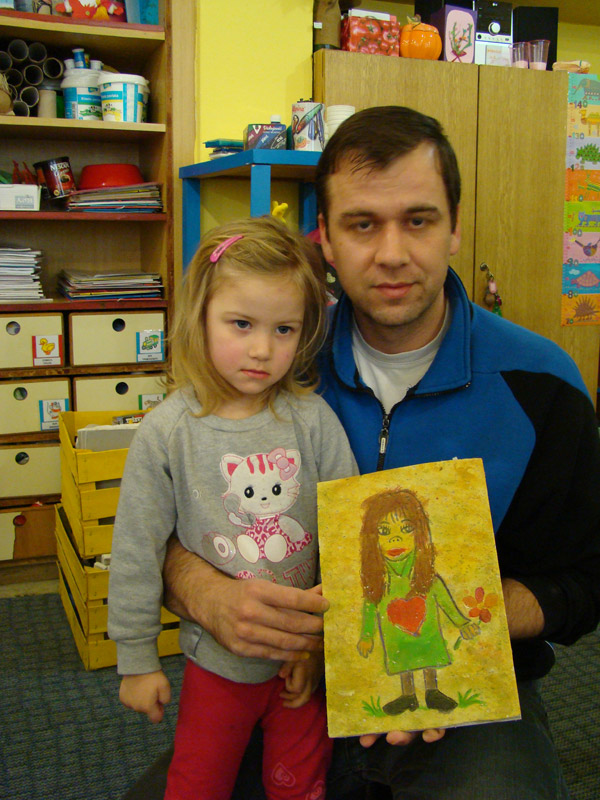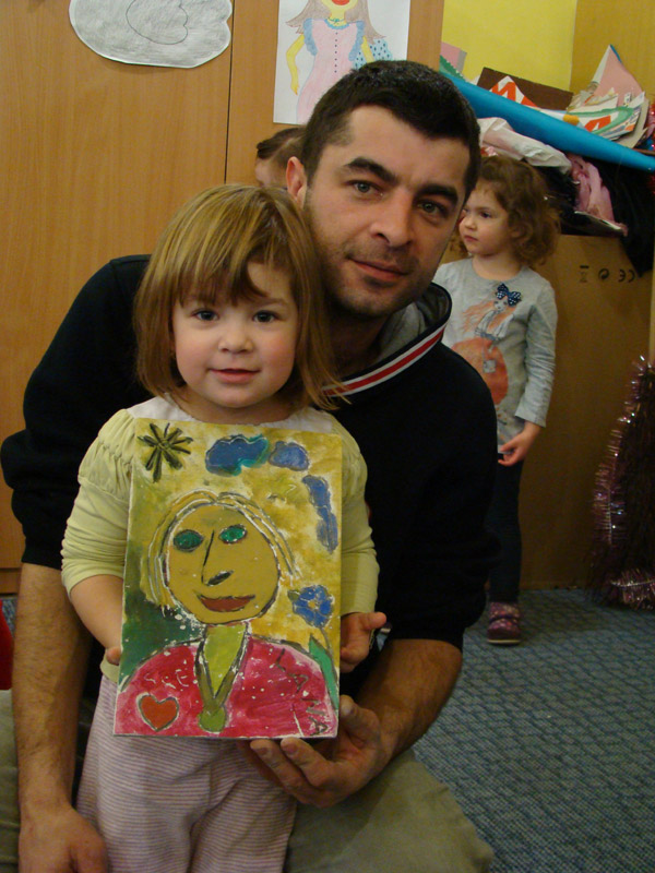 U vrtiću ŠUMICA u grupi CVETIĆI - FLOWERS, bilo je neobično razdragano jutro. Neobično za dešavanja u vrtiću radna soba ove vaspitne grupe bila je puna muškaraca. Ideja vaspitačice Nataše Stojić i Suzane Milovanović bila je da deca sa svojim očevima, dedama, stričevima, ujacima, dakle muškim članovima porodice, izrade sliku mame koju će deca pokloniti majci za Dan žena.