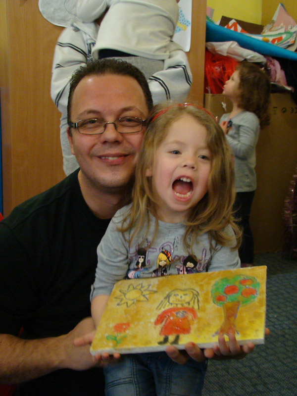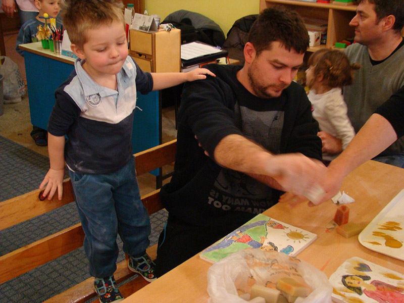 Deca su uživala u društvu svojih očeva i drugih članova svojih porodica, likovna tehnika je zainteresovala i decu i starije, a mame su zasigurno bile oduševljene poklonom.