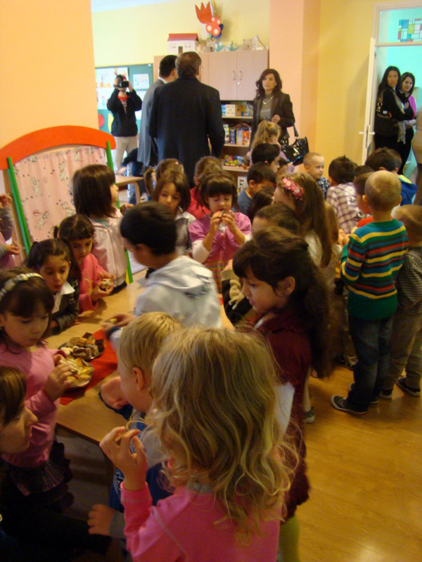 Mališani koji vrtić pohađaju od 1. septembra, su, zajedno sa vaspitačicama, pripremili prigodan program dobrodošlice gostima koji su došli podeliti sa jima veselje.