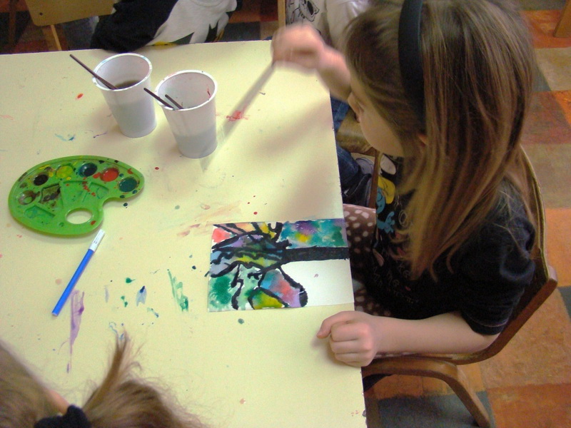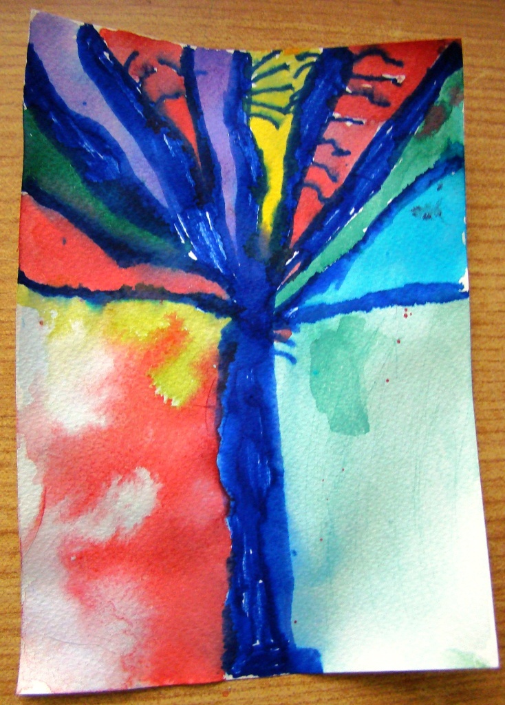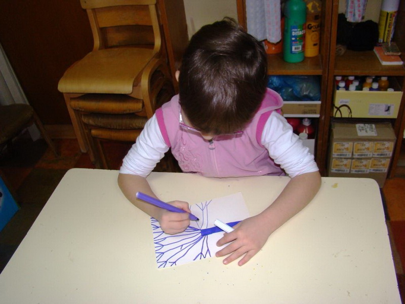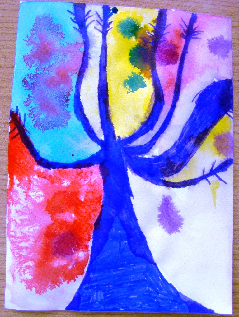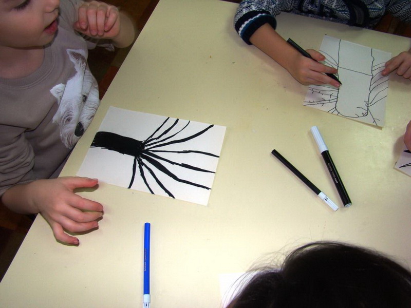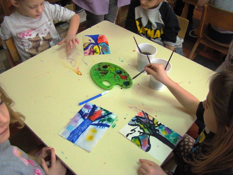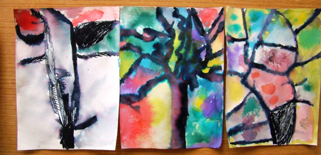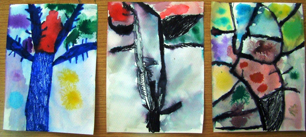 Tehnika nastanka ovih likovnih radova je varijanta laviranog crteža prilagođena predškolskoj deci koja umesto perom crtaju flomasterom, a svetlije i tamnije nijanse kojom se dočarava plastičnost objekta (u ovom slučaju drveta) dočaravaju vodom i tuševima u boji.