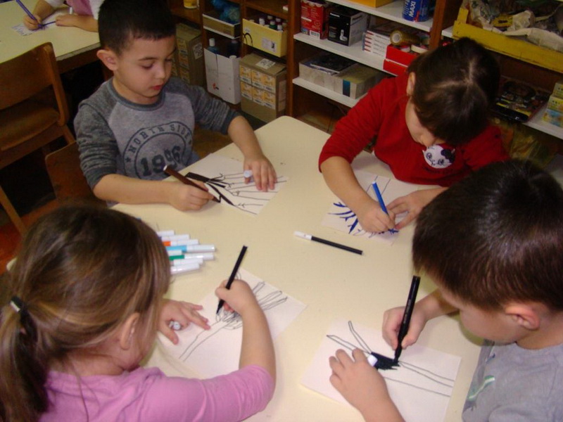 Mališani iz vrtića Šumica iz grupe vaspitačica Farkaš Aniko i Maša Doroteje, te iz grupe Trpković Nade i Levičar Branke upoznavali su čarolije laviranog crteža.