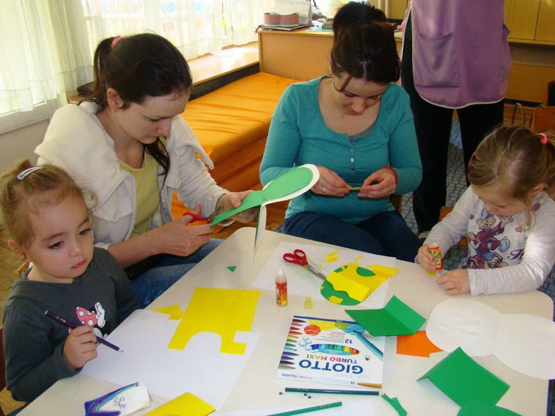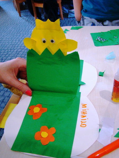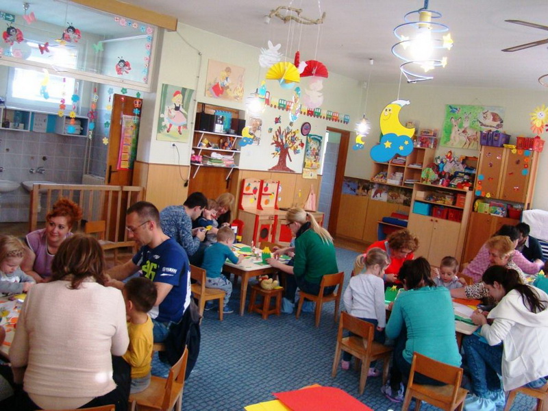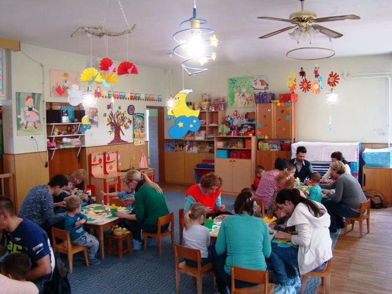 Deca su sa svojim roditeljima pravila uskršnje čestitke. Radionica je održana 6.4.2017.godine, a osmislile su je Elza Farkaš, medicinska sestra i Milana Laušev, vaspitačica.